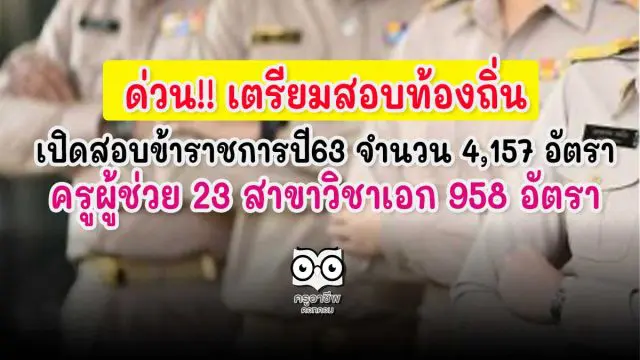 ด่วน!! ท้องถิ่น​เปิดสอบข้าราชการ​ปี63 จำนวน​ 4,157​ อัตรา ครูผู้ช่วย 23 สาขาวิชาเอก 958 อัตรา