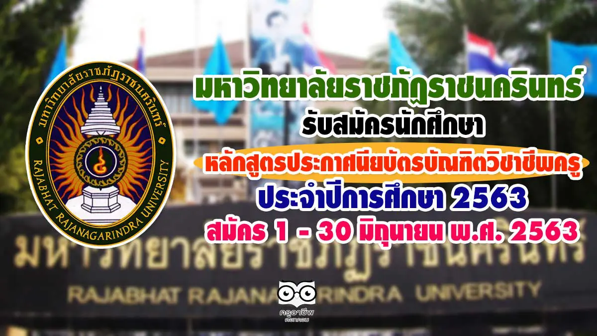 มหาวิทยาลัยราชภัฏราชนครินทร์ รับสมัครนักศึกษาเข้าศึกษาใน หลักสูตรประกาศนียบัตรบัณฑิตวิชาชีพครู ประจำปีการศึกษา 2563 เปิดรับสมัคร 1 – 30 มิถุนายน พ.ศ. 2563