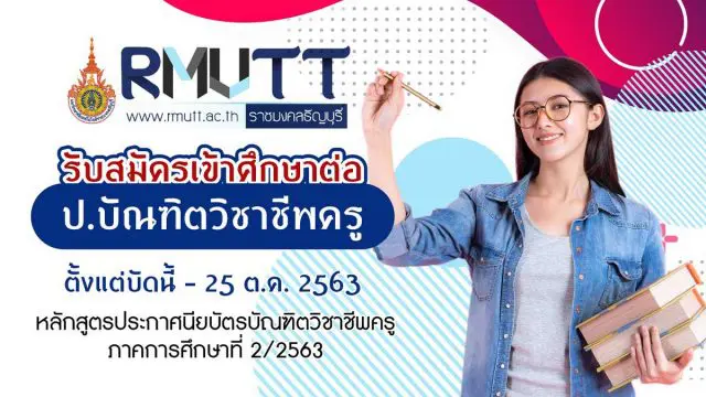 มหาวิทยาลัยเทคโนโลยีราชมงคลธัญบุรี รับสมัครเข้าศึกษาต่อ ป.บัณฑิตวิชาชีพครู ภาคพิเศษ ประจำภาคการศึกษาที่ 2/2563 หมดเขต 25 ต.ค. 2563