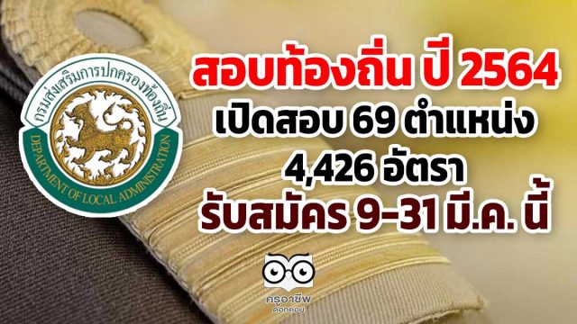 สอบท้องถิ่น ปี 2564 เปิดสอบ 69 ตำแหน่ง 4,426 อัตรา รับสมัคร 9-31 มี.ค. นี้
