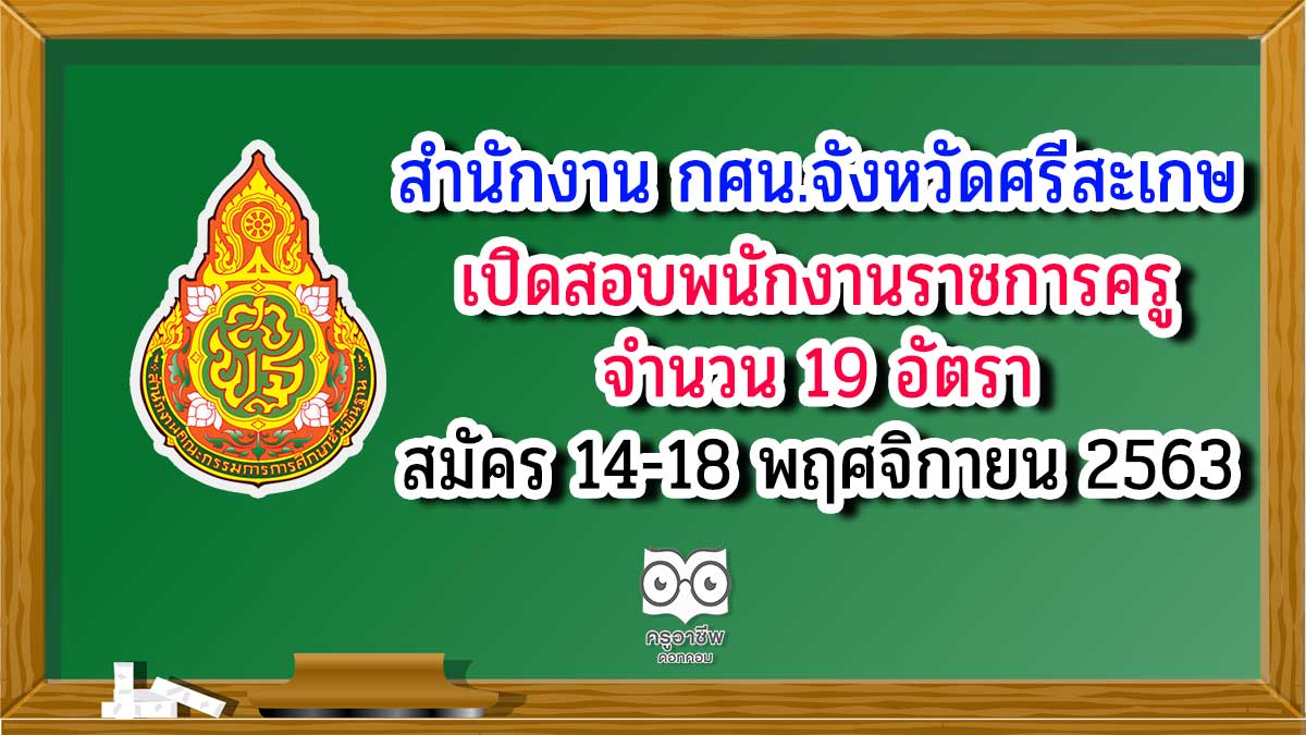 สำนักงาน กศน.จังหวัดศรีสะเกษ เปิดสอบพนักงานราชการครู จำนวน 19 อัตรา รับสมัคร 14-18 พฤศจิกายน 2563