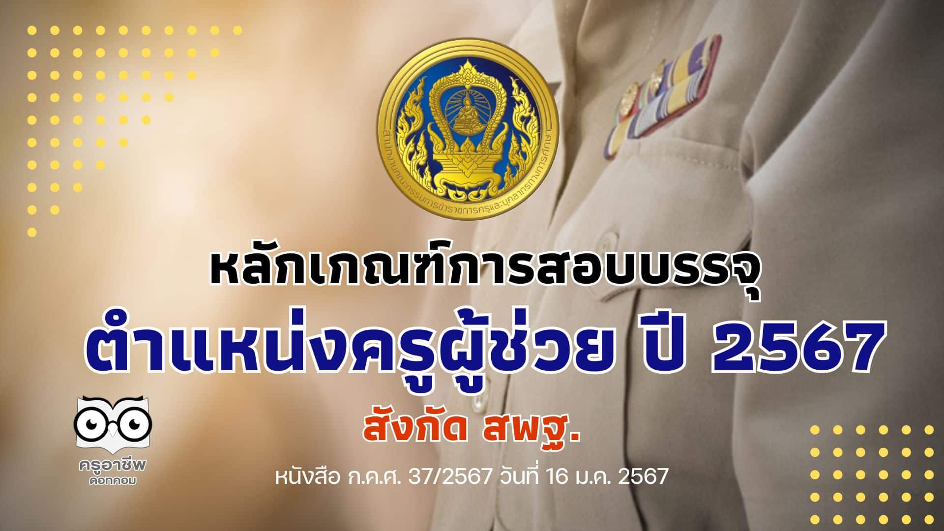 หลักเกณฑ์การสอบบรรจุ ตำแหน่งครูผู้ช่วย ปี 2567 สังกัด สพฐ. ดาวน์โหลดไฟล์ : https://otepc.go.th/th/content_page/item/4771-37-2567.html