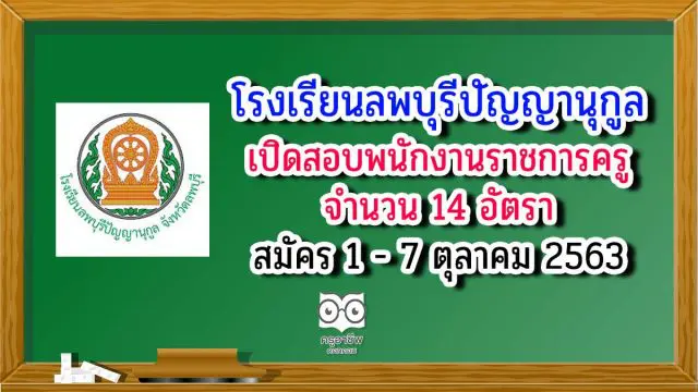 โรงเรียนลพบุรีปัญญานุกูล เปิดสอบพนักงานราชการทั่วไป ตำแหน่ง ครูผู้สอน จำนวน 14 อัตรา รับสมัครวันที่ 1 – 7 ตุลาคม 2563 ประกาศโรงเรียนลพบุรีปัญญานุกูล จังหวัดลพบุรี เรื่อง การสรรหาบุคคลเพื่อคัดเลือกเป็นพนักงานราชการทั่วไป ตำแหน่ง ครูผู้สอน (ค่าตอบแทน 18,000 บาท) จำนวน 14 อัตรา ดังนี้