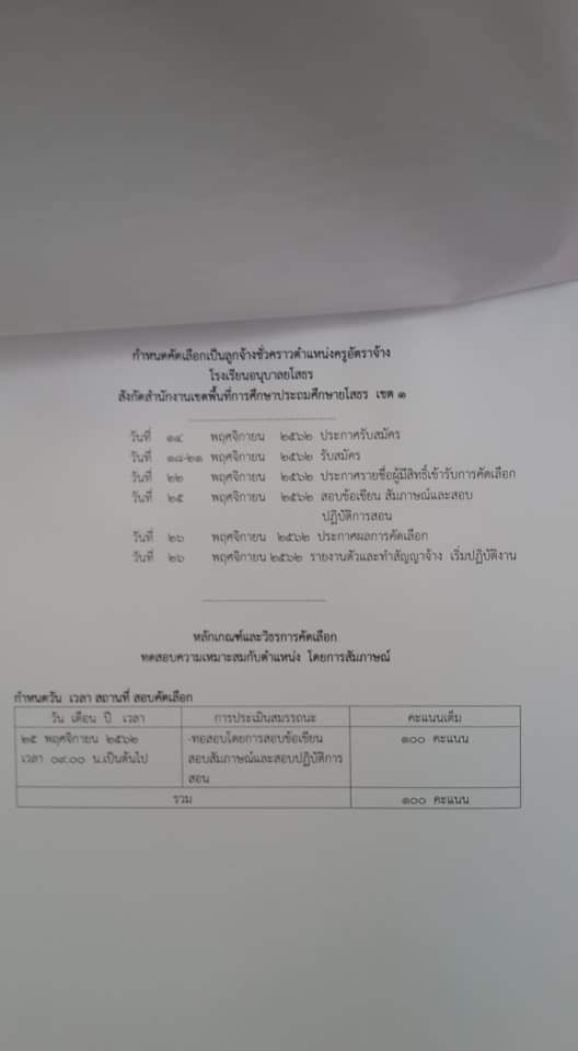 โรงเรียนอนุบาลยโสธร รับสมัครครูอัตราจ้าง วิชาเอกวิทยาศาสตร์ วันที่ 18 – 20 พ.ย. 2562 ค่าจ้าง 9,140 บาท รายละเอียดดังแนบ