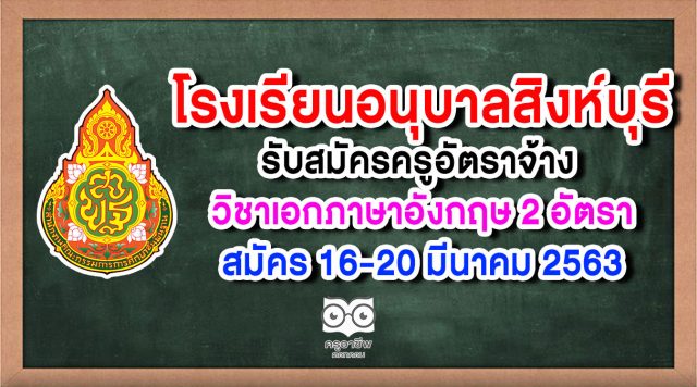 โรงเรียนอนุบาลสิงห์บุรี รับสมัครครูอัตราจ้าง วิชาเอกภาษาอังกฤษ 2 อัตรา สมัคร 16-20 มีนาคม 2563 ประกาศโรงเรียนอนุบาลสิงห์บุรี เรื่อง การรับสมัครบุคคลเพื่อจ้างเป็นครูอัตราจ้างโครงการโรงเรียนสองภาษา (Mini English Program) รายละเอียดดังนี้