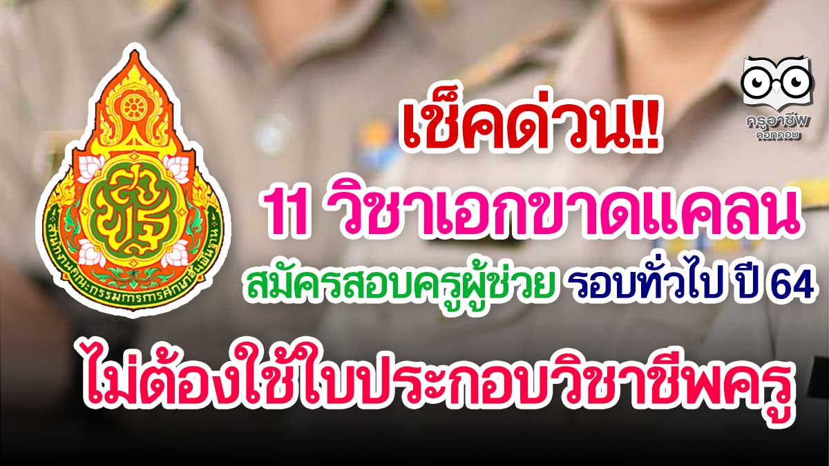 เช็คด่วน!! 11 วิชาเอกขาดแคลน สอบครูผู้ช่วย รอบทั่วไป ปีพ.ศ.2564 ไม่ต้องใช้ใบประกอบวิชาชีพครู
