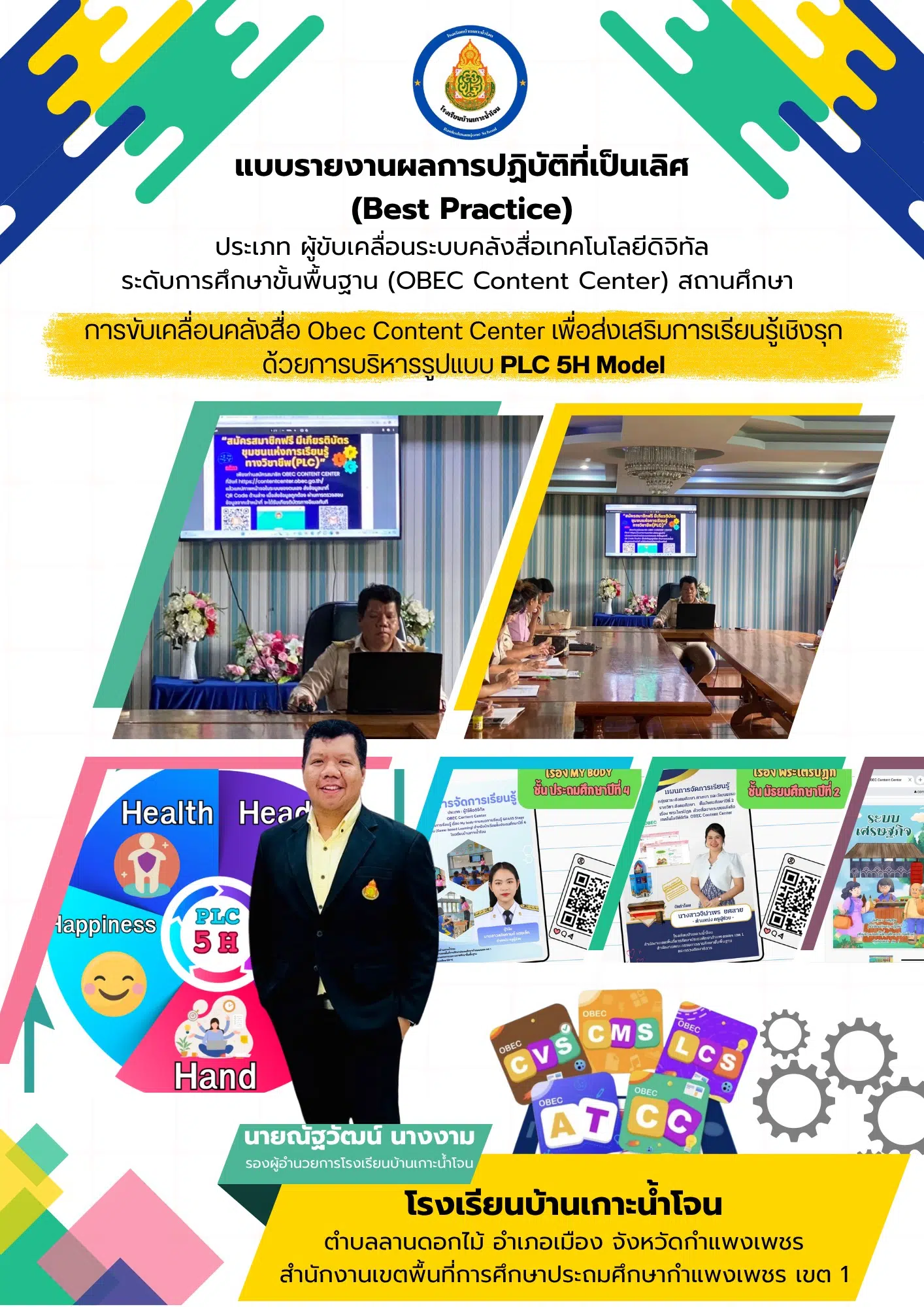 เผยแพร่ผลงาน การขับเคลื่อนคลังสื่อ Obec Content Center เพื่อส่งเสริมการเรียนรู้เชิงรุก ด้วยการบริหารรูปแบบ PLC 5H Model โรงเรียนบ้านเกาะน้ำโจน สังกัดสำนักงานเขตพื้นที่การศึกษาประถมศึกษากำแพงเพชร เขต 1