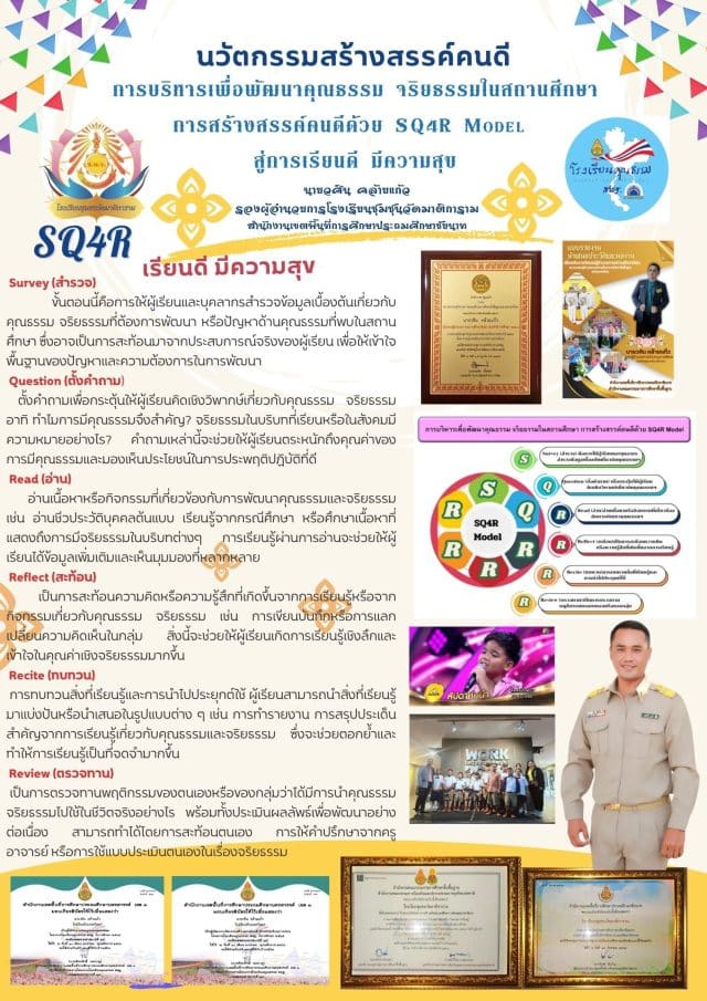 การบริหารเพื่อพัฒนาคุณธรรม จริยธรรมในสถานศึกษา การสร้างสรรค์คนดีด้วย SQ4R MODEL โดยนายวศิน คล้ายแก้ว รองผู้อำนวยการโรงเรียนชุมชุนวัดมาติการาม สำนักงานเขตพื้นที่การศึกษาประถมศึกษาชัยนาท