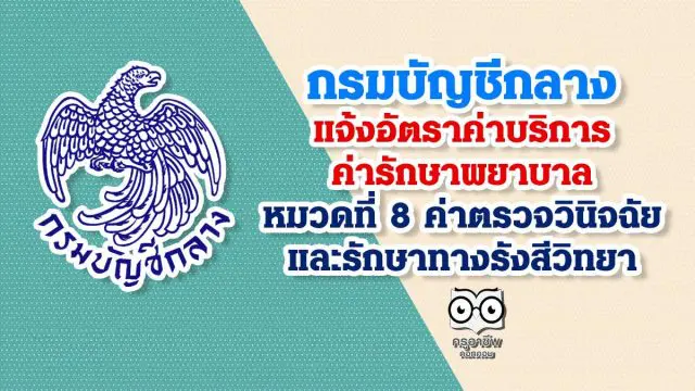 กรมบัญชีกลางแจ้ง อัตราค่าบริการค่ารักษาพยาบาล หมวดที่ 8 ค่าตรวจวินิจฉัยและรักษาทางรังสีวิทยา