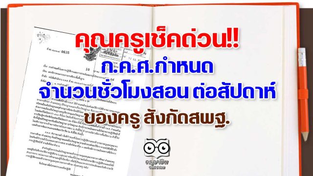 เช็คด่วน!! ก.ค.ศ.ได้กำหนด จำนวนชั่วโมงสอน ต่อสัปดาห์ ของครู สังกัดสพฐ.