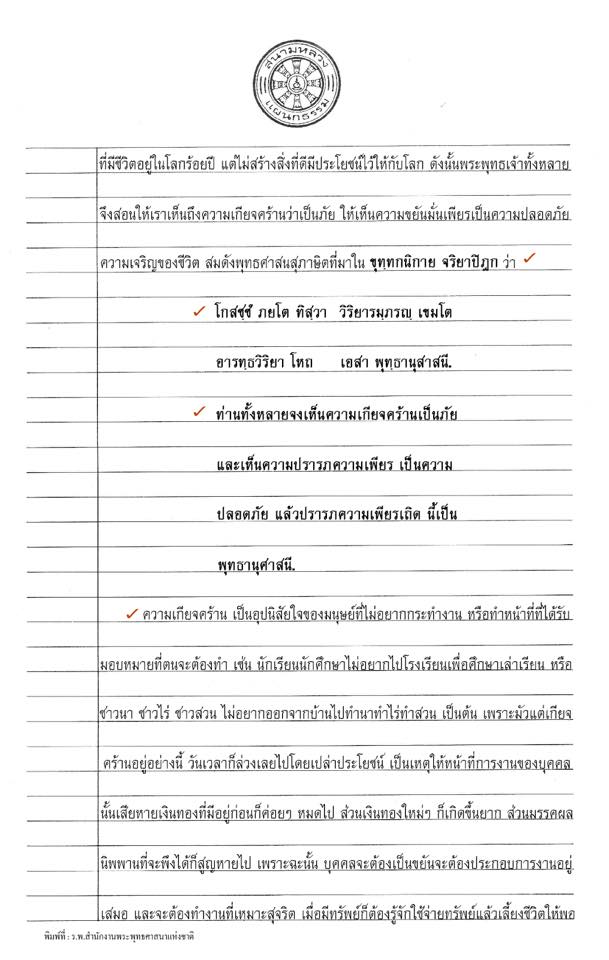 ตัวอย่าง การเขียนเรียง ความแก้กระทู้ธรรม