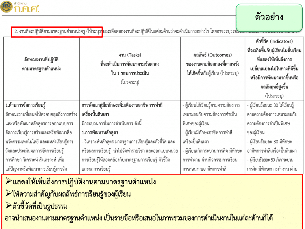 ตัวอย่างแนวทางการจัดทำข้อตกลงในการพัฒนางาน Performance Agreement (PA) ของครูกับผู้บริหารสถานศึกษา โดย ก.ค.ศ.