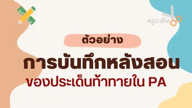 บันทึกหลังสอนเกณฑ์ PA ที่จะช่วยให้ได้ 20 คะแนนจาก 100 ควรครอบคลุม 3 อย่าง 1) จุดประสงค์การเรียนรู้ 2) 8 ตัวชี้วัด และ 3) ความคาดหวังตามระดับวิทยฐานะที่จะขอ