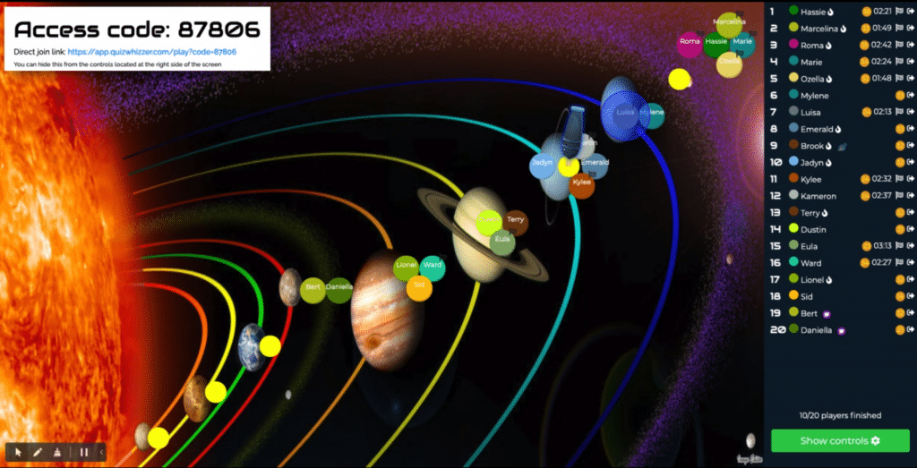 Quizwhizzer คือ เกมการสอนในรูปแบบของบอร์ดเกม ถ้าเด็กๆตอบคำถามถูกก็จะก้าวไปข้างหน้า ถ้าตอบผิดก็ต้องถอยหลัง (อยู่ที่ครูตั้งค่า) ใครตอบถูกเร็วสุด ไวสุด ก็จะเคลื่อนที่ไปถึงเส้นชัยก่อน ครูสามารถออกแบบเส้นทางการเดินได้