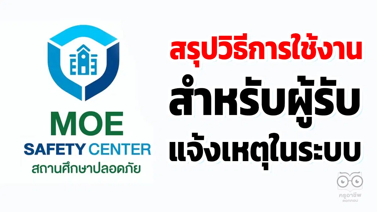 บทความนี้ ครูอาชีพดอทคอม ขอนำเสนอบทความสรุปวิธี การใช้งาน สำหรับผู้รับแจ้งเหตุในระบบ MOE Safty Center ซึ่งมีรายละเอียดค่อนข้างมาก เพื่อความสะดวกสำหรับคุณครู และเจ้าหน้าที่ที่ดูแลระบบ MOE Safty Center ของสถานศึกษาจึงขออธิบายรายละเอียดการใช้งานในด้านต่างๆ ดังต่อไปนี้