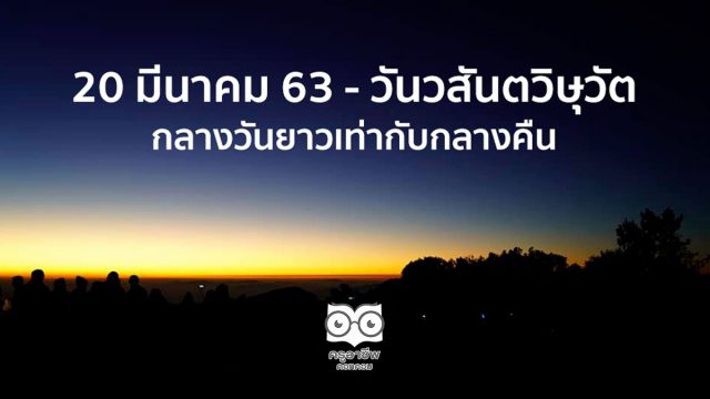 วันที่ 20 มีนาคม 2563 นี้ เป็นวัน “วสันตวิษุวัต” (วะ-สัน-ตะ-วิ-สุ-วัด) (Vernal Equinox) กลางวันยาวเท่ากับกลางคืน คำว่า “วิษุวัต” (Equinox) ในภาษาสันสกฤตหมายถึง จุดที่ดวงอาทิตย์อยู่ในตำแหน่งตั้งฉากกับเส้นศูนย์สูตรของโลกพอดี
