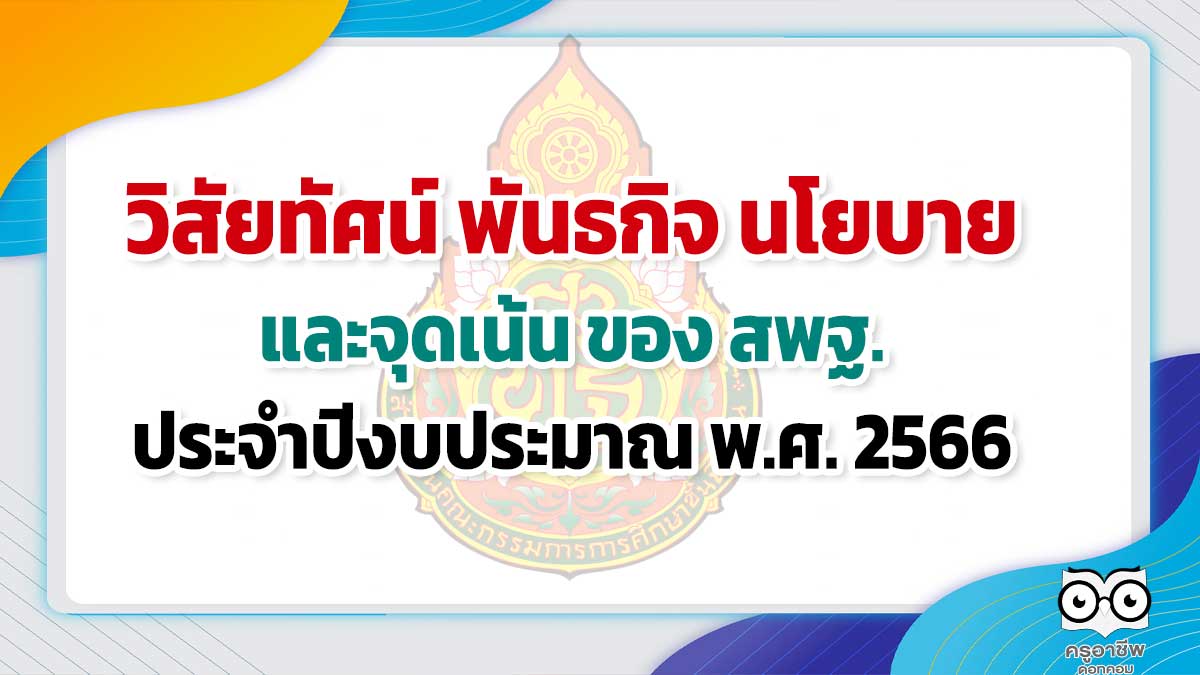 วิสัยทัศน์ พันธกิจ นโยบายและจุดเน้น ของ สพฐ. ประจำปีงบประมาณ พ.ศ. 2566