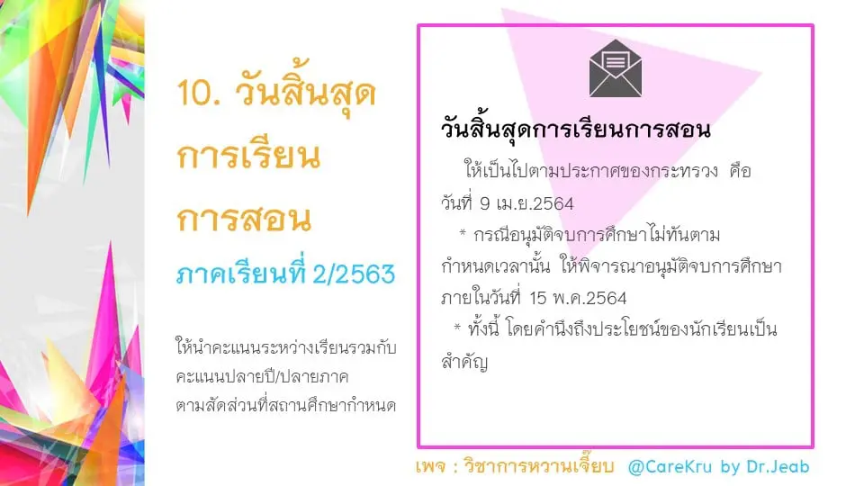 สรุปแนวทางการวัดและประเมินผลการเรียนรู้ของสถานศึกษาในสถานการณ์การแพร่ระบาดของโรคติดเชื้อไวรัสโคโรนา 2019 (COVID-19) ระลอกใหม่ ปีการศึกษา 2563 (ซักซ้อมความเข้าใจ) โดยเพจ : วิชาการหวานเจี๊ยบ