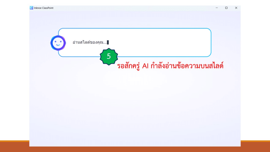 ขั้นตอนที่ 5 สร้างคำถาม จากนั้น รอสักครู่ AI กำลังอ่านข้อความบนสไลด์