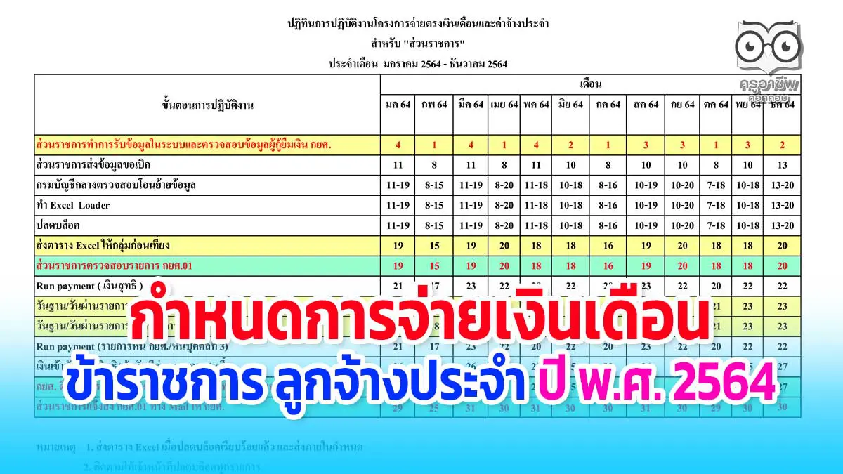 กำหนดการจ่ายเงินเดือนข้าราชการ ลูกจ้างประจำ ปี พ.ศ. 2564 เงินเดือน ปี 2564 เข้าวันไหน