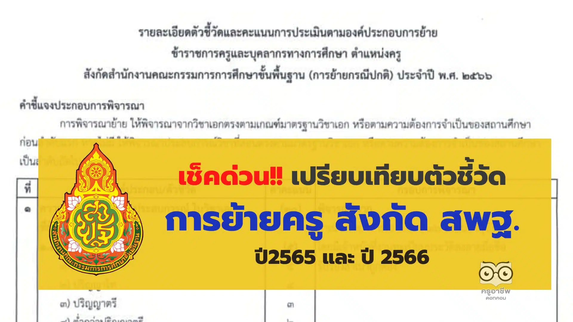 เช็คด่วน!! เปรียบเทียบตัวชี้วัดการย้ายครู สังกัด สพฐ. ปี 65 กับ ปี 66