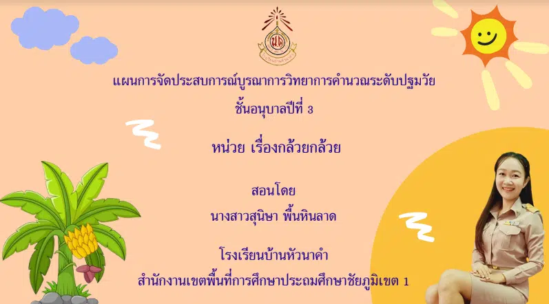 เผยแพร่ผลงาน แผนการจัดประสบการณ์บูรณาการวิทยาการคำนวณ ระดับปฐมวัย หน่วย เรื่องกล้วย ๆ โดยนางสาวสุนิษา พื้นหินลาด ครู โรงเรียนบ้านหัวนาคำ สพป.ชัยภูมิ เขต 1
