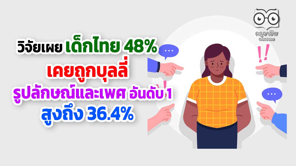 วิจัยเผย 48% ของเด็กไทย เคยถูกบุลลี่ อันดับ 1 คือเรื่อง รูปลักษณ์และเพศ สูงถึง 36.4%