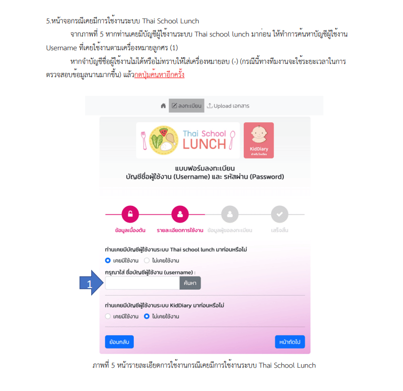 แนวทางการใช้งานการลงทะเบียนแพลตฟอร์ม KidDiary เพื่อใช้ในการรับชื่อผู้ใช้งานและรหัสผ่าน (Username & Password) ชุดใหม่ในนามสถานศึกษาสำหรับการเข้าใช้งานระบบ Thai School Lunch และ Kid Diary School