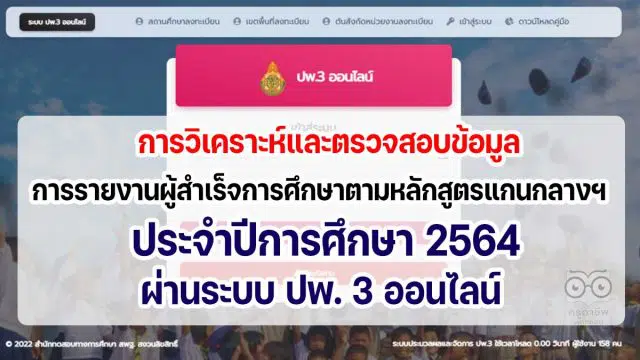 การวิเคราะห์และตรวจสอบข้อมูลการรายงานผู้สำเร็จการศึกษาตามหลักสูตรแกนกลางการศึกษาขั้นพื้นฐาน ประจำปีการศึกษา 2564 ผ่านระบบ ปพ. 3 ออนไลน์