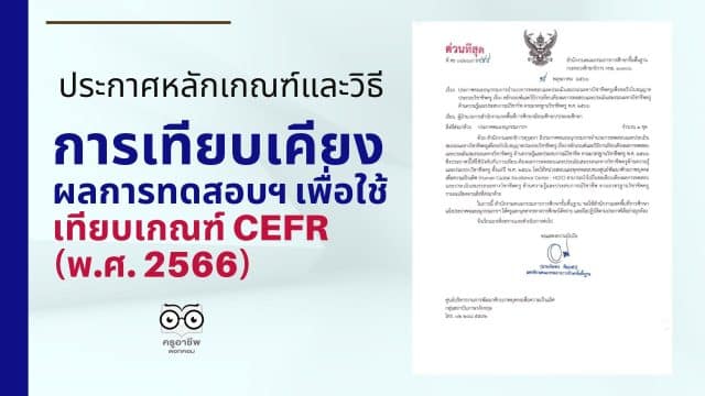 ประกาศหลักเกณฑ์และวิธีการเทียบเคียงผลการทดสอบฯ เพื่อใช้เทียบเกณฑ์ CEFR (พ.ศ. 2566) คุณครูสามารถนำไปใช้ประกอบการลดระยะเวลาตาม ว4 (จาก 4 ปี เหลือเพียง 3 ปี จาก PA 3 รอบปีงบ เหลือ 2 รอบปีงบ)