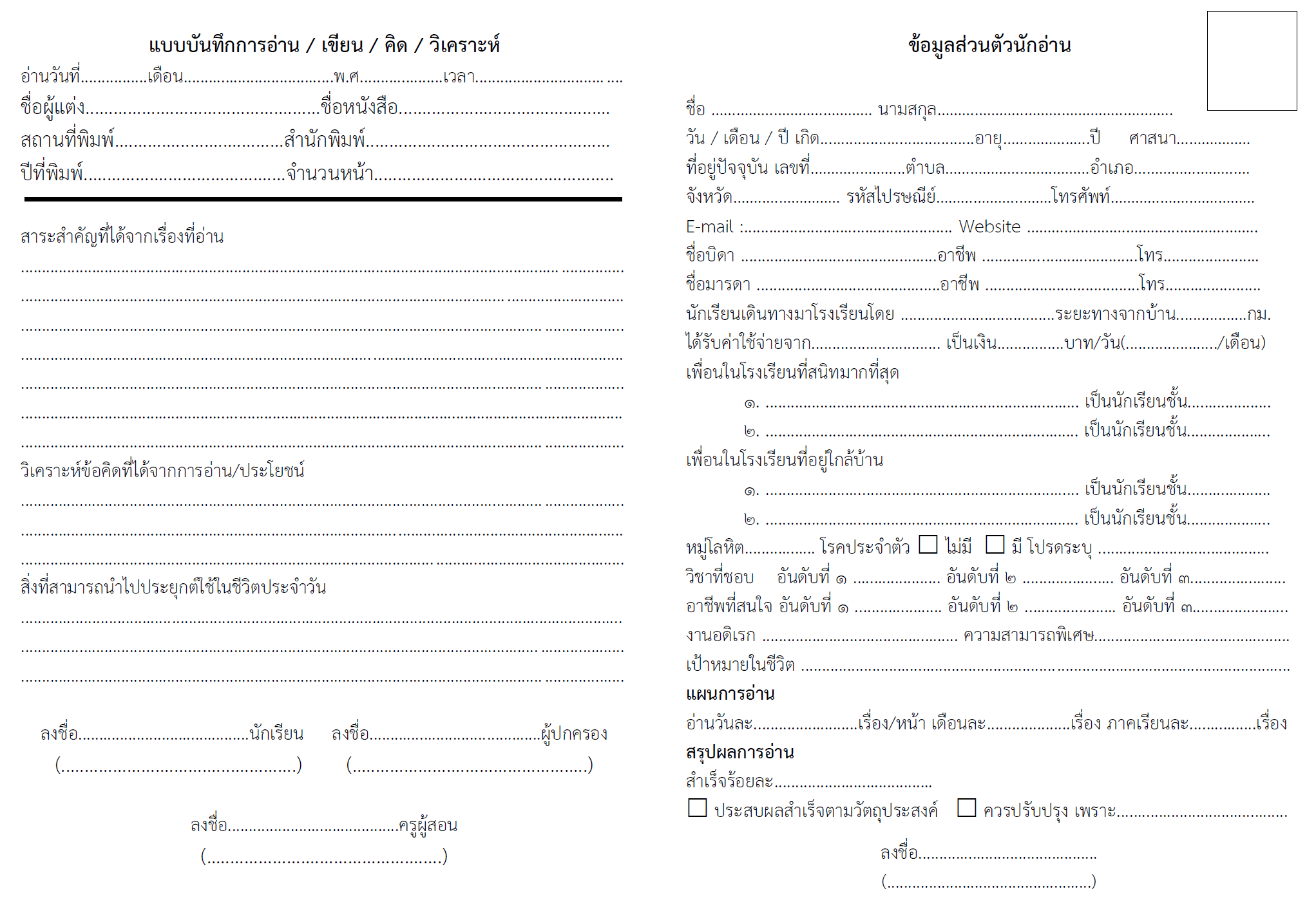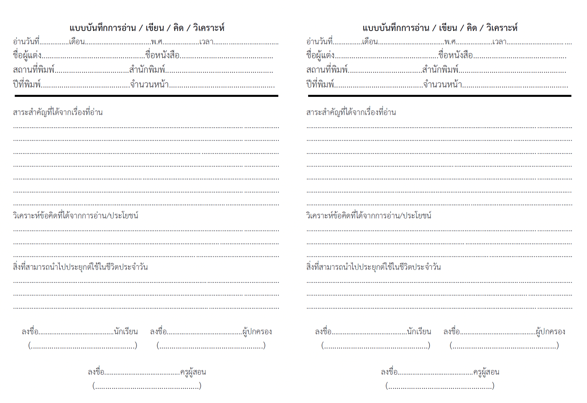 แจกสมุดบันทึกรักการอ่าน ไฟล์ word แก้ไขได้ พร้อมปกสวยๆ แจกฟรี