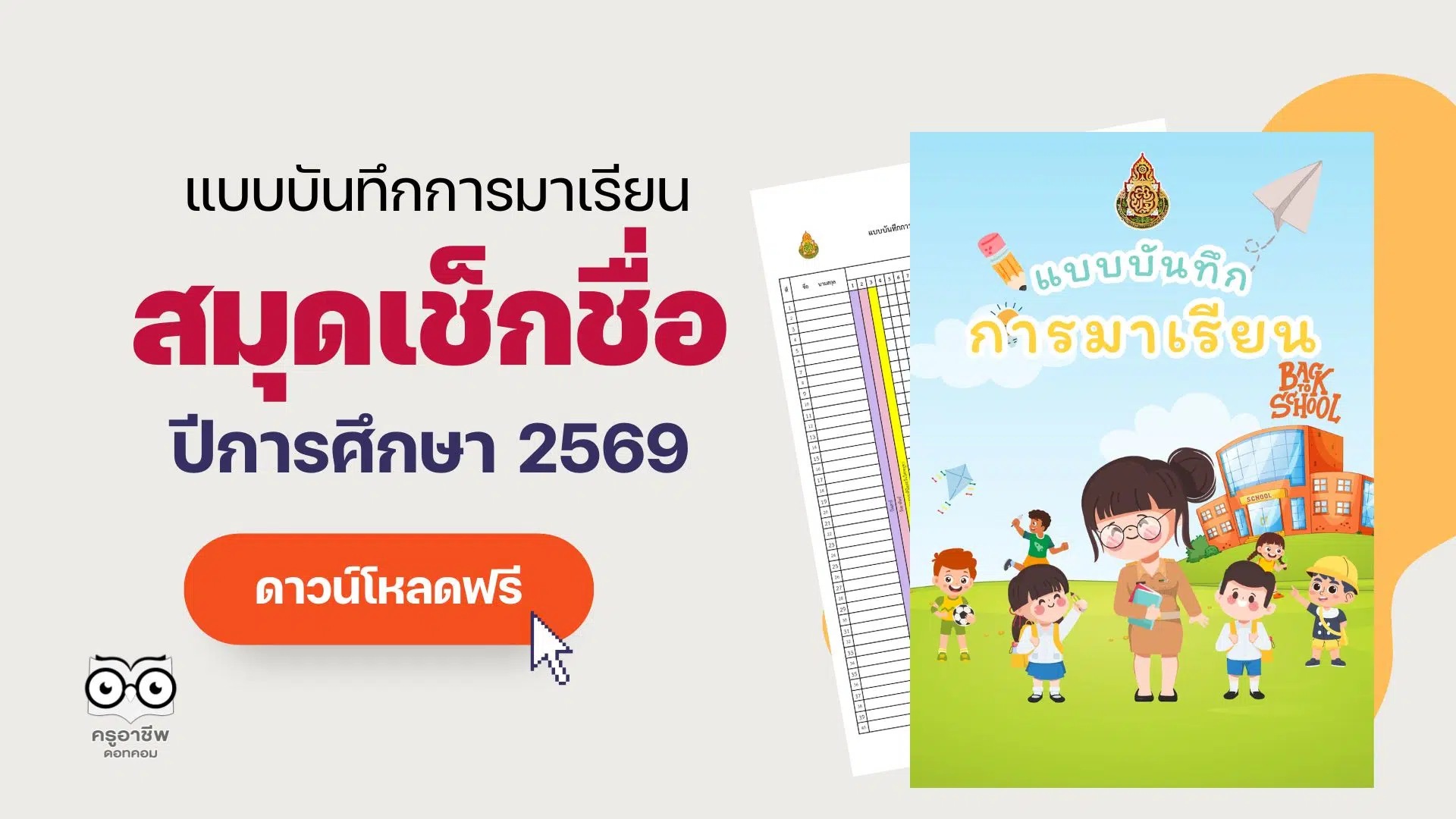 มาแล้ว ดาวน์โหลดฟรี แบบบันทึกการมาเรียน ของนักเรียน สมุด เช็ค ชื่อ สมุดเช็คเวลาเรียน ปีการศึกษา 2569 ครบทั้ง 2 ภาคเรียน ไฟล์ Excel พร้อมปกแก้ไขได้ ครูอาชีพดอทคอม แบ่งปันให้คุณครูรับไฟล์ไปเลยในลิงก์ด้านล่าง ฟรี!!