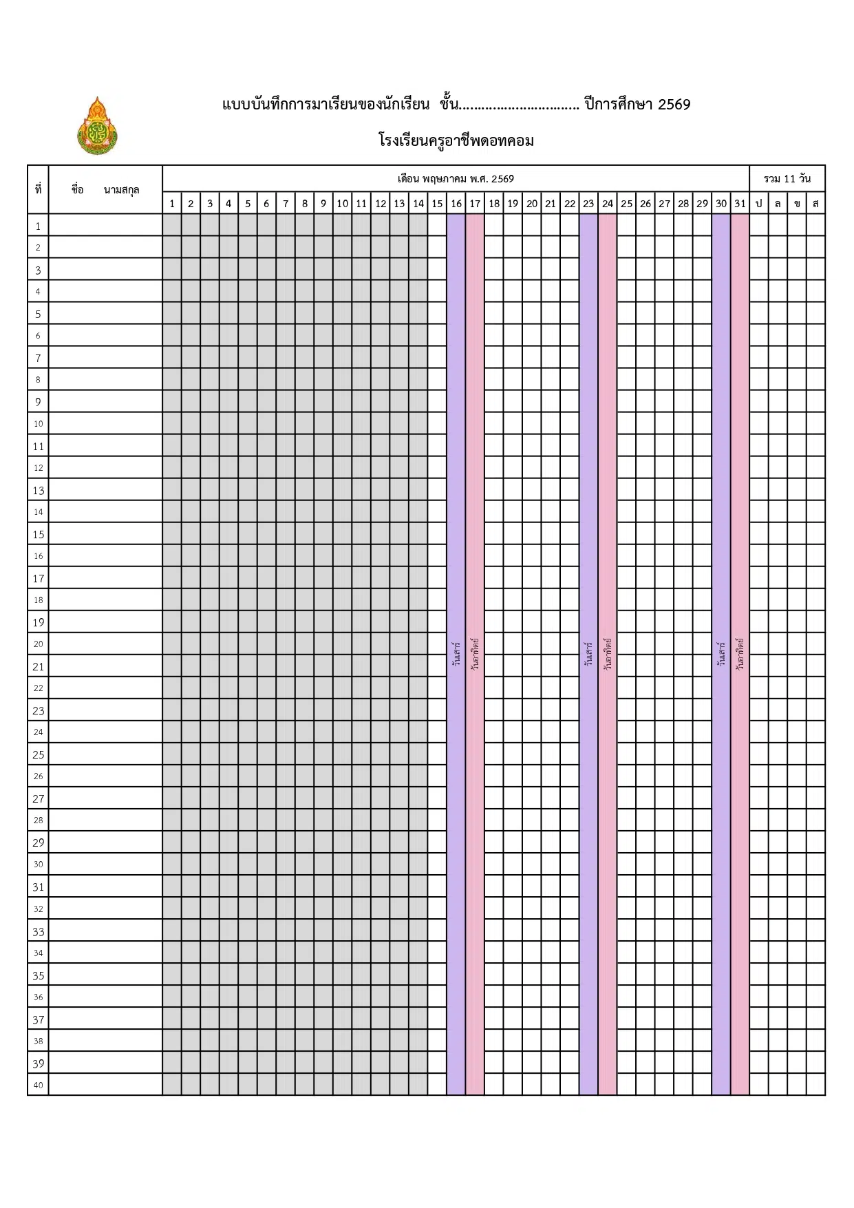 - นับวันมาเรียน วันหยุด ปีการศึกษา 2569