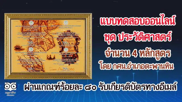 แบบทดสอบออนไลน์ ชุด ประวัติศาสตร์ 4 หลักสูตร ผ่านเกณฑ์ร้อยละ 80 รับเกียรติบัตรออนไลน์ผ่านทางอีเมล์ โดย กศน.อำเภอตะพานหิน