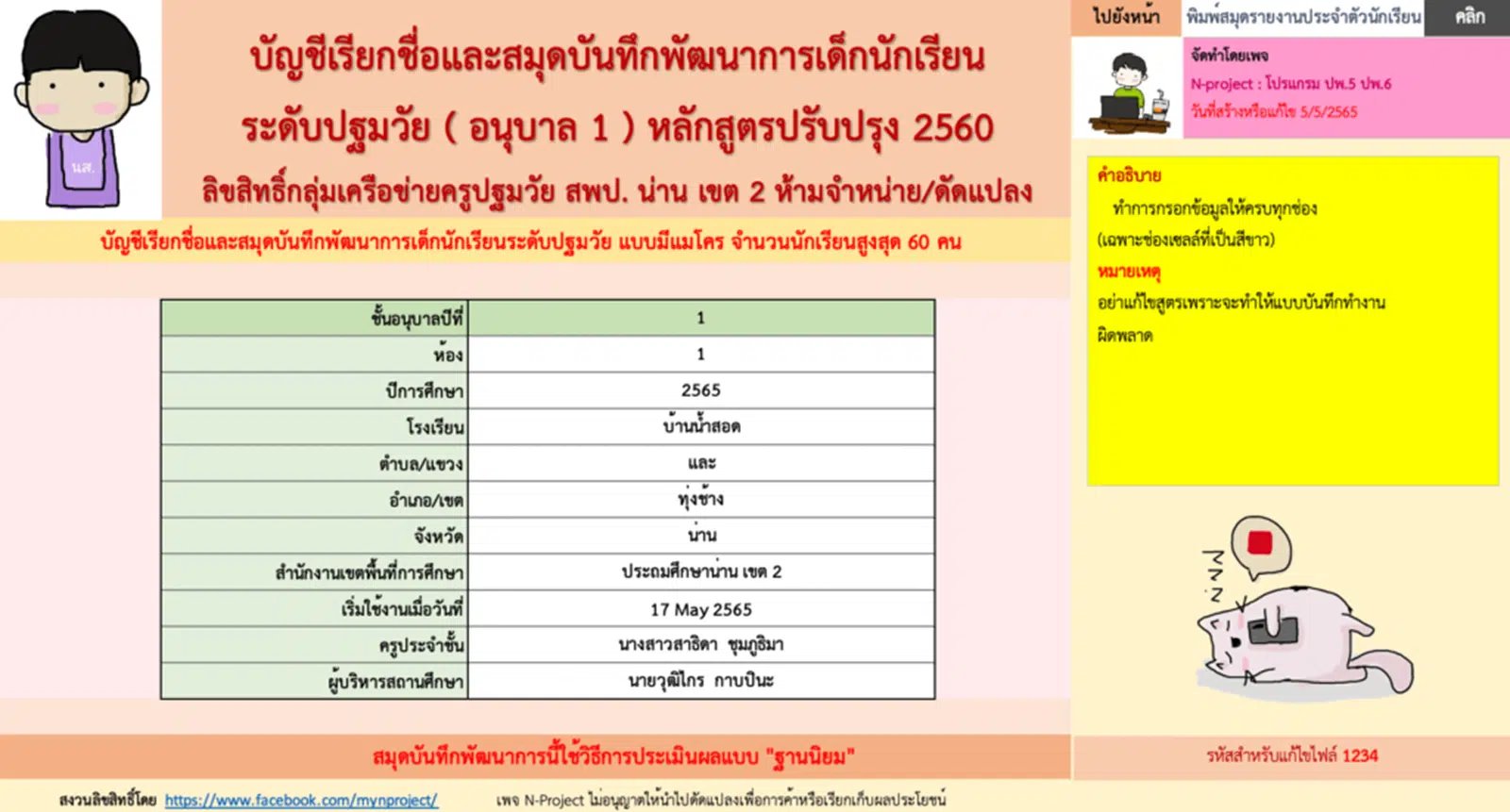 แจกไฟล์ บัญชีเรียกชื่อและสมุดพัฒนาการเด็กนักเรียน ระดับปฐมวัย (อ.1-3) โดยเพจN-Project