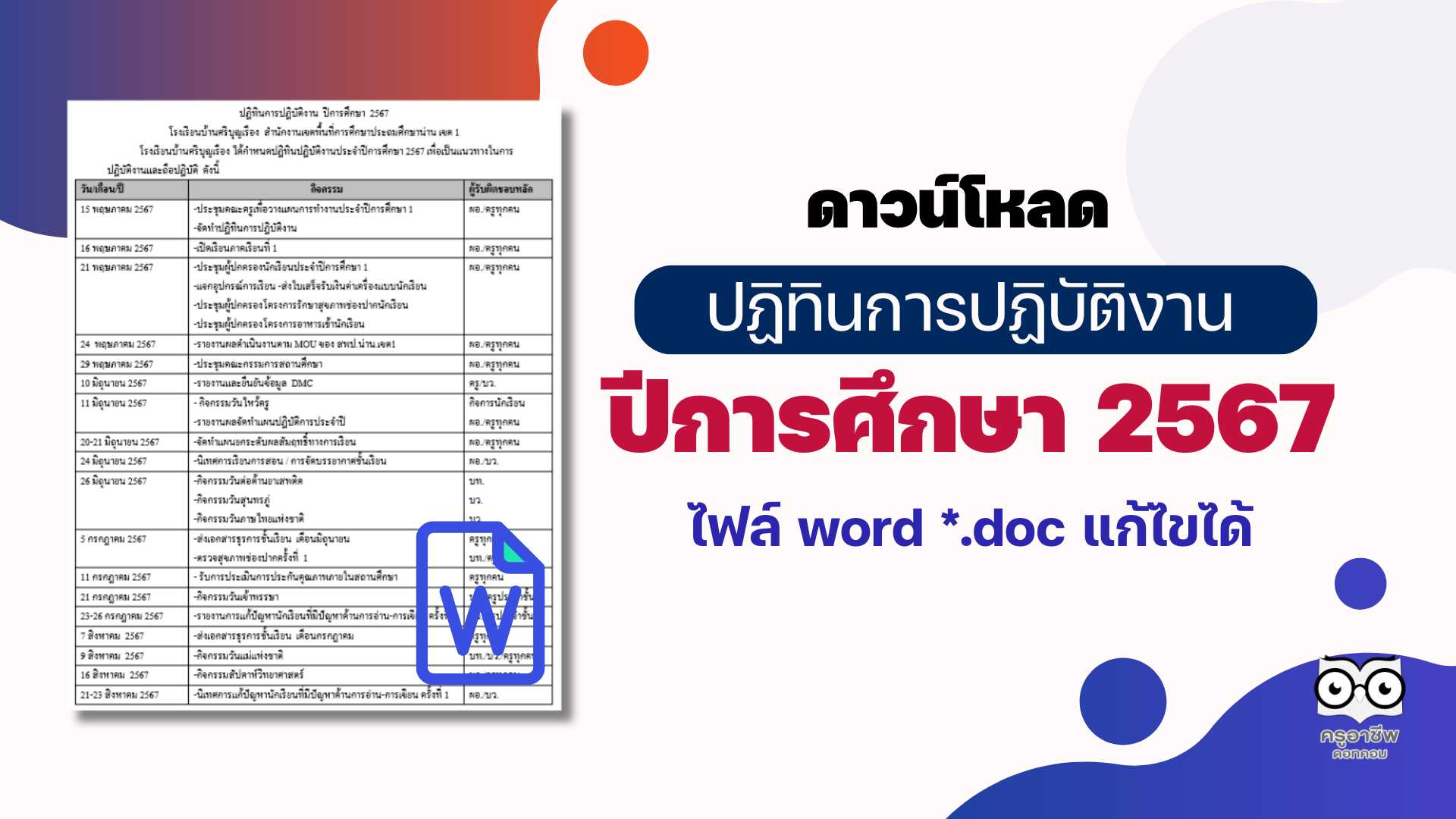 ดาวน์โหลด ปฏิทินการปฏิบัติงาน ปีการศึกษา 2567 ครบ 2 ภาคเรียน ไฟล์ word *.doc แก้ไขได้