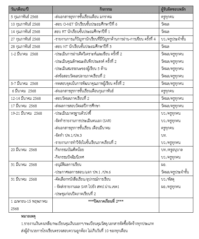 แจกไฟล์เอกสาร ปฏิทิน การปฏิบัติงาน ปีการศึกษา 2567 ไฟล์เวิร์ด แก้ไขได้ มีให้ครบ 2 ภาคเรียน ครบปีการศึกษาไปเลยค่ะ · ใช้ได้ทั้งรายบุคคล และ รายโรงเรียน ฝ่ายวิชาการหวังว่าปฏิทิน ปฏิบัติงานโรงเรียนฉบับนี้ คงจะเป็นแนวทางในการควบคุมเวลาการจัดกิจกรรมต่าง ๆ ตลอดปีการศึกษา 2557 ให้สำเร็จลุล่วงด้วยดี บรรลุวัตถุประสงค์ และทันเวลาสมเจตนารมณ์ ทุกประการ