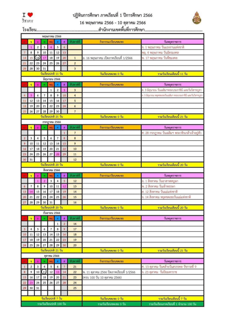 มาแล้วปฏิทิน กำหนด วันเรียน และปฏิทิน นับวัน มาเรียน ปีการศึกษา 2567 (รวมภาคเรียนที่ 1-2) ปฏิทิน 100 วัน ปฏิทิน 200 วัน ปีการศึกษา 2567 ปฏิทินการศึกษา และปฏิทินนับวันเรียน ปีการศึกษา 2567 ภาคเรียนที่ 1-2 โดยเพจวิชาการ เป็นไฟล์ Excel สามารถปรับแก้ไขเป็นของโรงเรียนได้