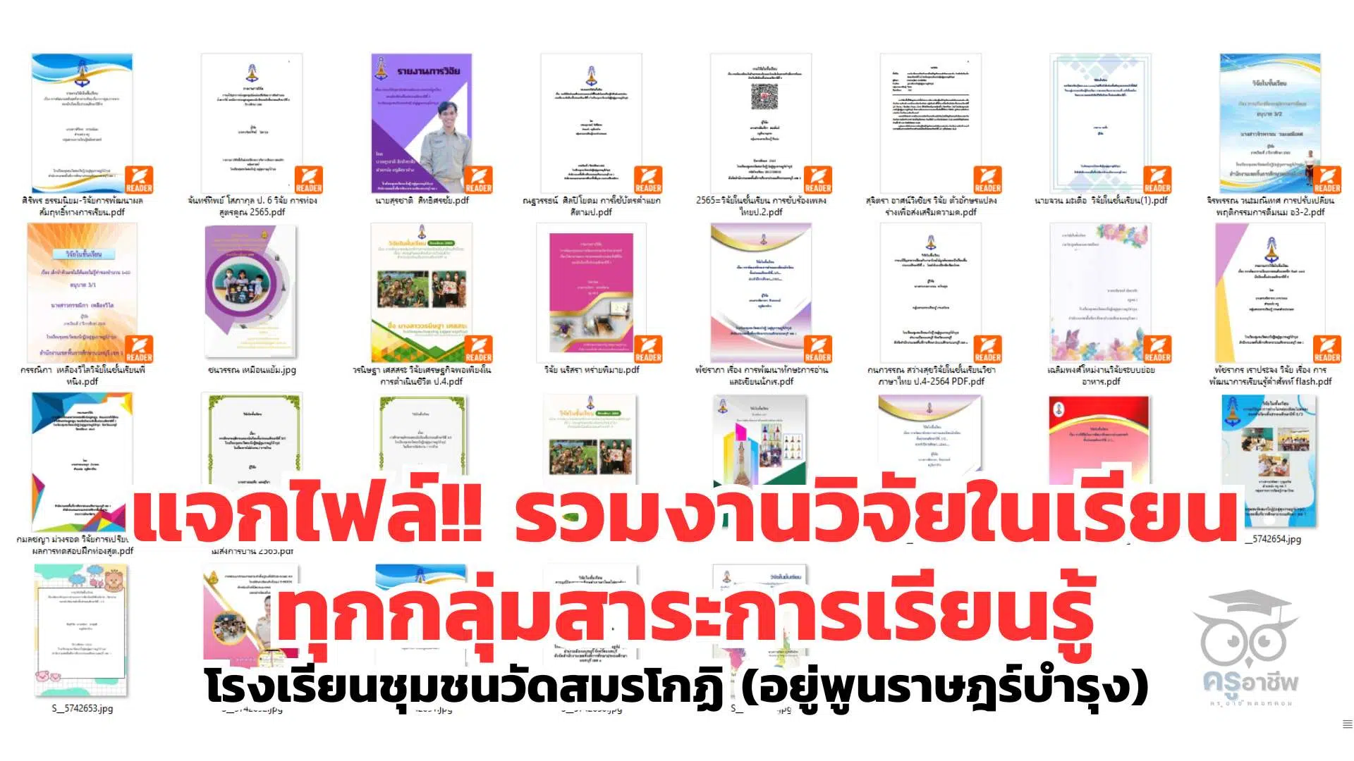 แจกไฟล์ รวมงานวิจัยในเรียน ทุกกลุ่มสาระการเรียนรู้ โดยโรงเรียนชุมชนวัดสมรโกฏิ