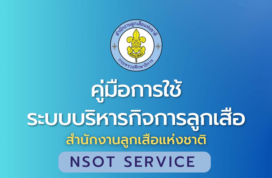คู่มือ/แนวทางการใช้งานระบบฯ และเข้าใช้งานแพลตฟอร์มดิจิทัลระบบบริหารกิจการลูกเสือ สำนักงานลูกเสือแห่งชาติ ได้ที่เว็บไซต์ http://nsot.scoutthailand.org