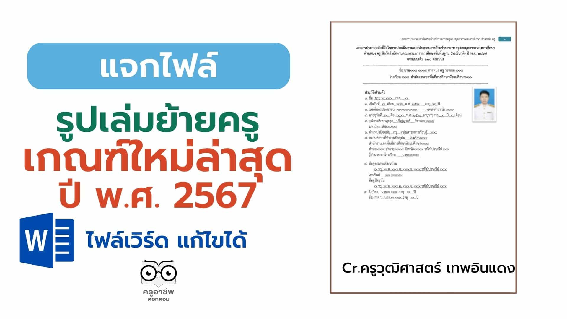 แจกไฟล์ รูปเล่มย้ายครู เกณฑ์ใหม่ล่าสุด 2567 ไฟล์เวิร์ด แก้ไขได้