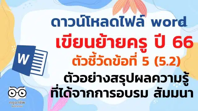 ตัวอย่างไฟล์ เขียนย้ายครู ปี 66 ตัวชี้วัดข้อที่ 5 (5.2) สรุปผลการนำความรู้ ความสามารถ ทักษะ ที่ได้จากการอบรม สัมมนา
