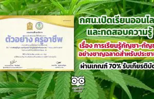 ขอเชิญเรียนออนไลน์ และทดสอบความรู้เรื่อง การเรียนรู้กัญชา-กัญชงอย่างชาญฉลาดสำหรับประชาชน ผ่านเกณฑ์ 70% รับเกียรติบัตร โดยสำนักงาน กศน.