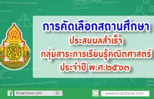 การคัดเลือกสถานศึกษาที่ส่งเสริมคุณภาพและมาตรฐานการศึกษาประสบผลสำเร็จกลุ่มสาระการเรียนรู้คณิตศาสตร์ ประจำปี พ.ศ.๒๕๖๓
