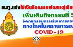 สพฐ.แจ้งใช้เงินกิจกรรมพัฒนาผู้เรียน เพิ่มเติมกิจกรรมที่ 5 จัดกิจกรรมการจัดการเรียนการสอนทางไกลในช่วงสถานการณ์ การแพร่ระบาดของโรคติดเชื้อไวรัสโคโรนา 2019 (COVID-19)