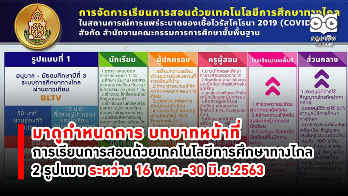 มาดูกำหนดการ บทบาทหน้าที่การเรียนการสอนด้วยเทคโนโลยีการศึกษาทางไกล 2 รูปแบบ ระหว่าง 16 พ.ค.-30 มิ.ย.2563