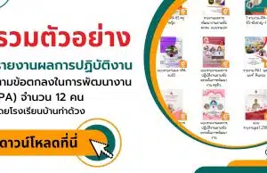 รวมตัวอย่าง รายงานผลการปฏิบัติงานตามข้อตกลงในการพัฒนางาน (PA) จำนวน 12 คน ประจำปีงบประมาณ 2565 โดยโรงเรียนบ้านท่าด้วง