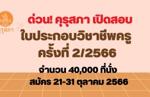ด่วน! คุรุสภา เปิดสอบรับใบประกอบวิชาชีพครู ครั้งที่ 2/2566 จำนวน 40,000 ที่นั่ง รับสมัคร 21-31 ตุลาคม...
