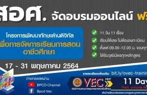 สอศ.จัดอบรมออนไลน์ โครงการพัฒนาทักษะทางด้านดิจิทัลเพื่อการจัดการเรียนการสอนอาชีวศึกษา 17-31 พ.ค. 64 ได้เกียรติบัตรทุกหลักสูตร