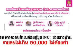 ออมสิน ให้กู้รอบ 2 สินเชื่อเสริมพลังฐานราก 5 หมื่นบาท ไม่ต้องค้ำประกัน ปลอดชำระเงินต้นและดอกเบี้ย 6 เดือนแรก